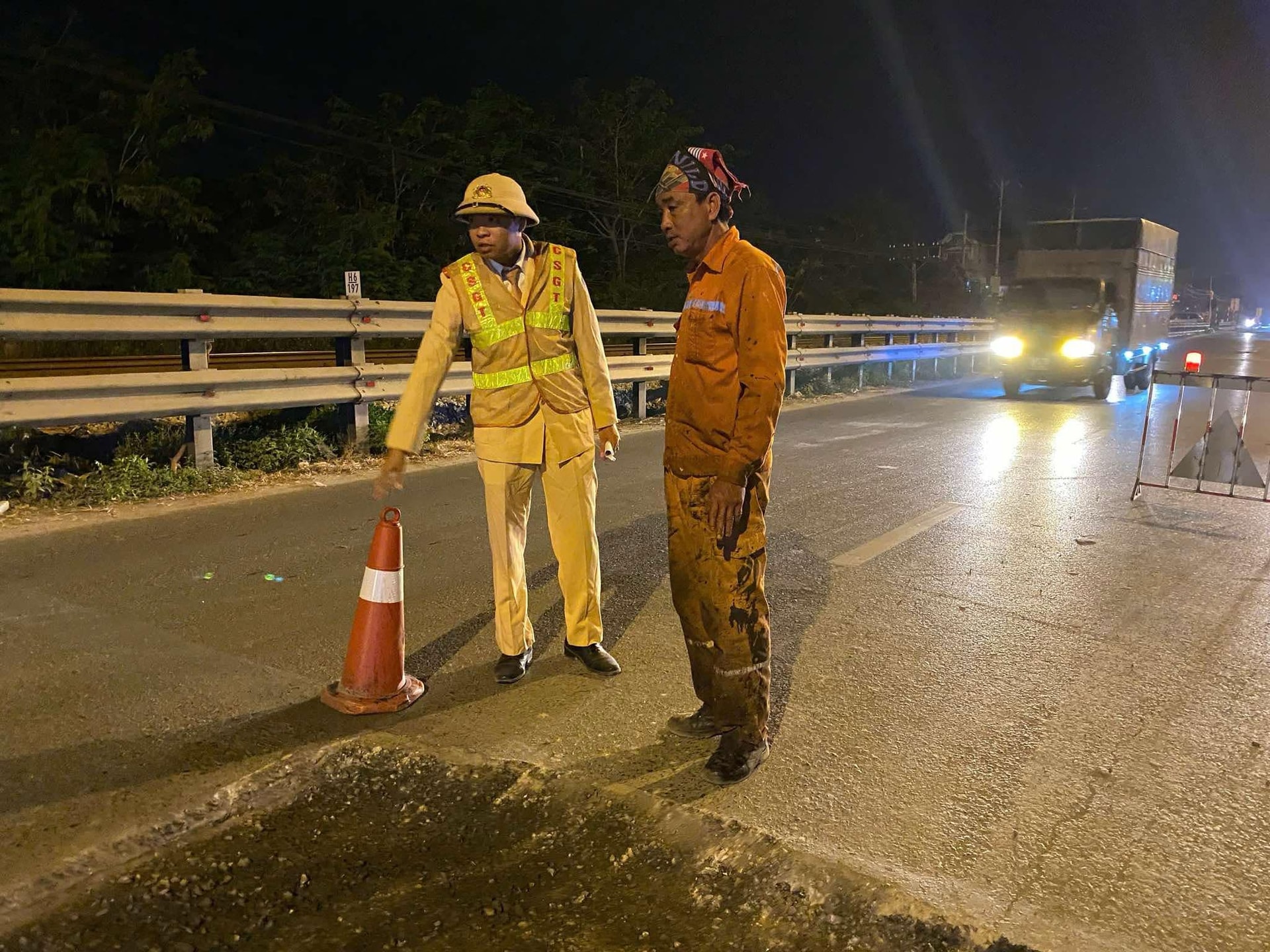 Đồng thời, yêu cầu cầu chủ đầu tư thu dọn toàn bộ vật tư vật liệu tập kết đúng nơi quy bảo đảm an toàn giao thông và vệ sinh môi trường; Đẩy nhanh tiến độ thi công, thu hồi rào chắn và bố trí đầy đủ lực hướng phối hợp với các lực lượng chức năng để tổ chức hướng dẫn phân luồng, giao thông trong quá trình thi công trên QL1A không để xảy ra ùn tắc giao thông; trong quá trình thi công nếu để xảy ra tai nạn giao thông Chủ đầu tư phải chịu hoàn toàn trách nhiệm trước pháp luật.