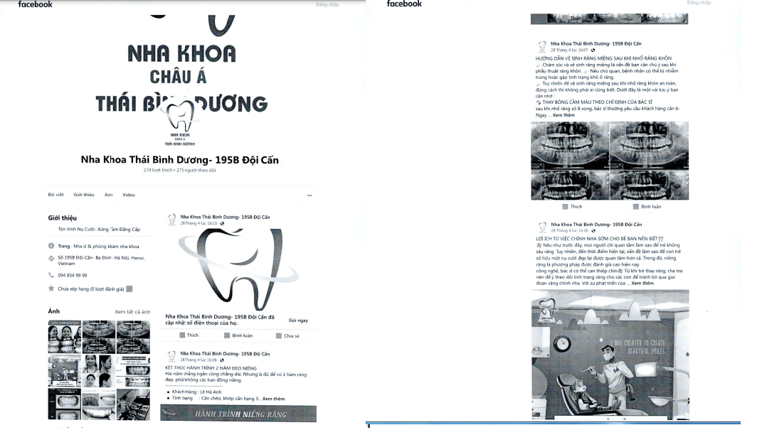 Phòng khám chuyên khoa Răng hàm mặt – Nha khoa Thái Bình Dương, số 195B Đội Cấn, phường Đội Cấn quảng cáo khi chưa được cấp giấy phép hoạt động và phê duyệt nội dung quảng cáo