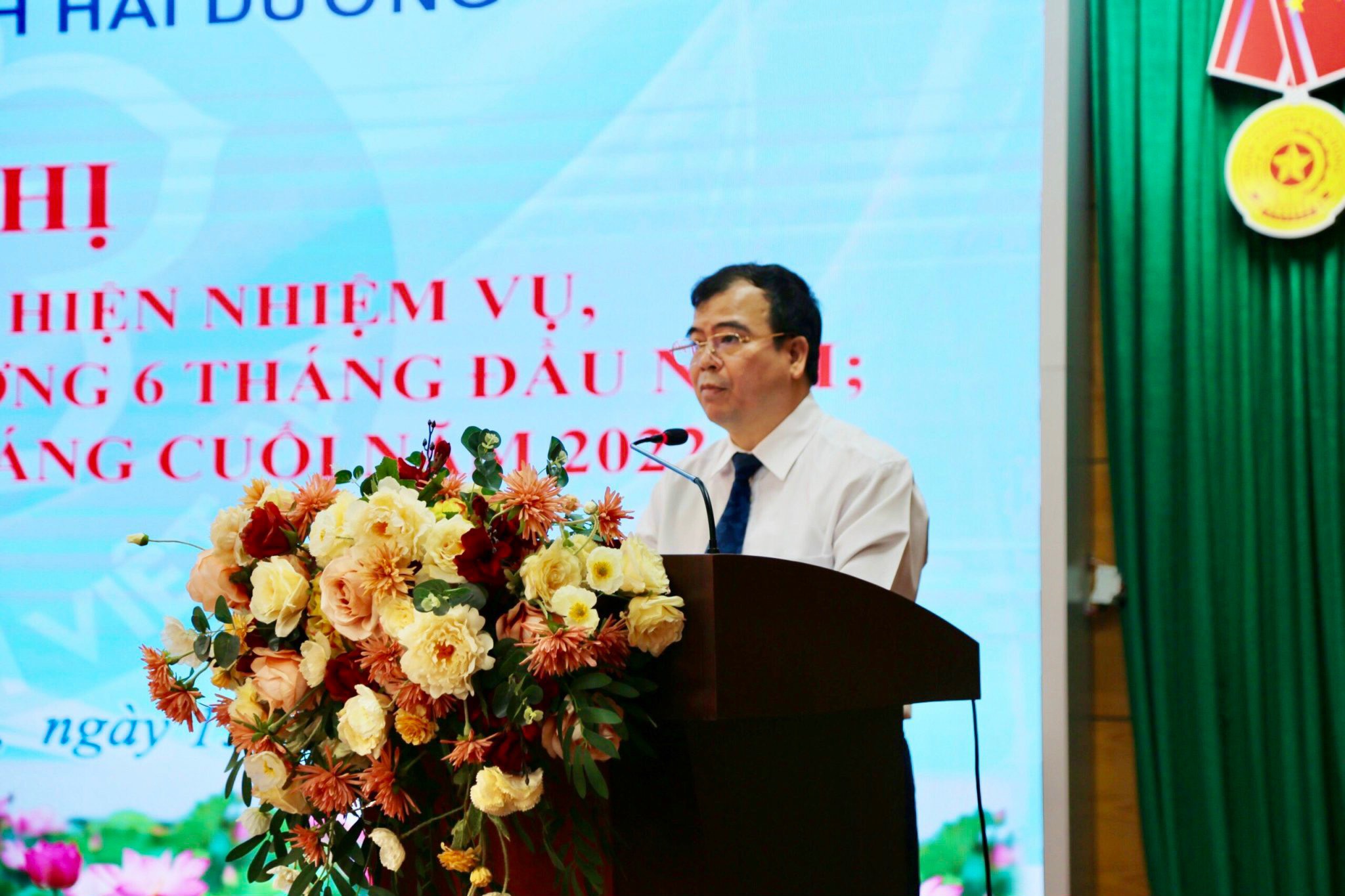 Ông Nguyễn Minh Hùng - Tỉnh ủy viên, Phó chủ tịch UBND tỉnh phát biểu chỉ đạo tại Hội nghị triển khai công tác BHXH, BHYT 6 tháng cuối năm tại BHXH tỉnh Hải Dương.