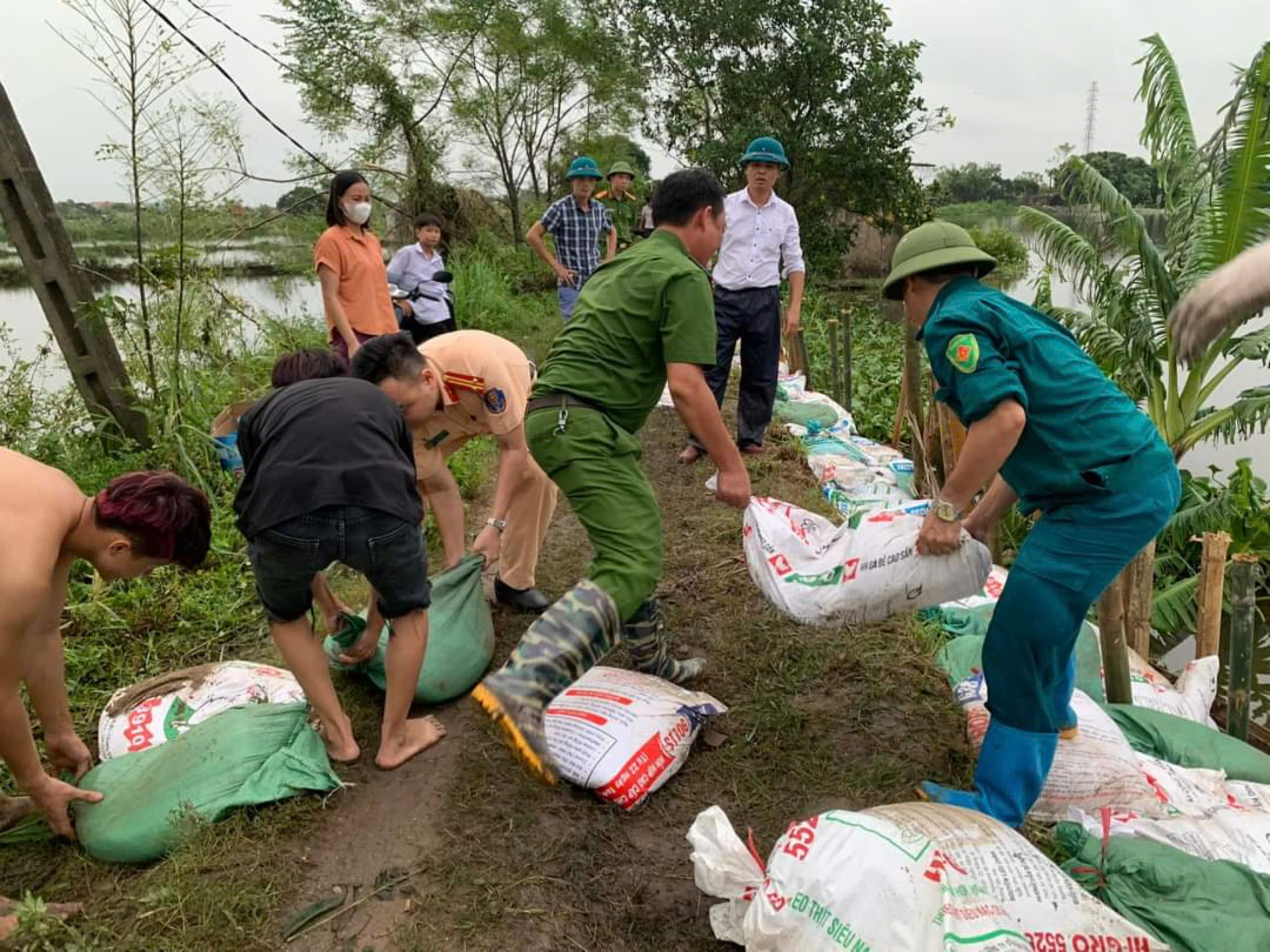 Các tuyến đê tại huyện Cẩm Giàng liên tục được kiểm tra và gia cố. Ảnh Đài huyện Cẩm Giàng.
