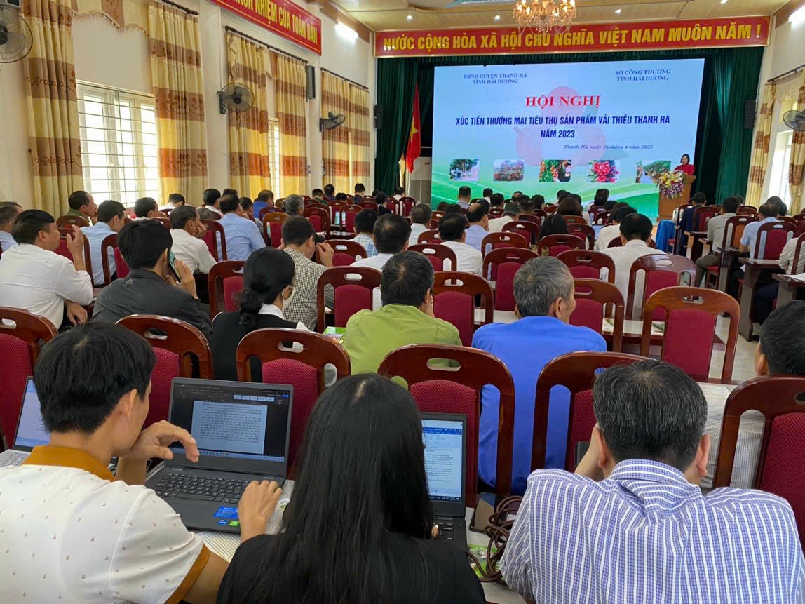 Chiều 26/4/2023, huyện Thanh Hà phối hợp với Sở Công Thương tỉnh Hải Dương tổ chức Hội nghị xúc tiến thương mại tiêu thụ sản phẩm vải thiều Thanh Hà năm 2023.