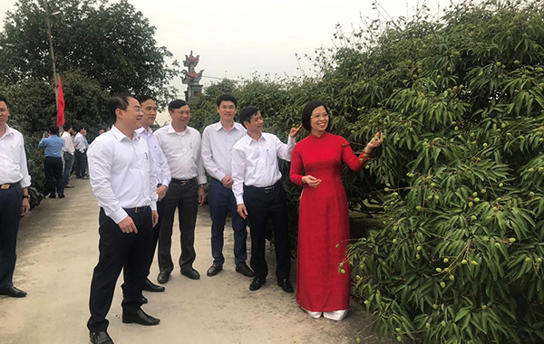 Đại biểu về thăm vùng sản xuất vải tiêu chuẩn VietGap tại xã Thanh Quang