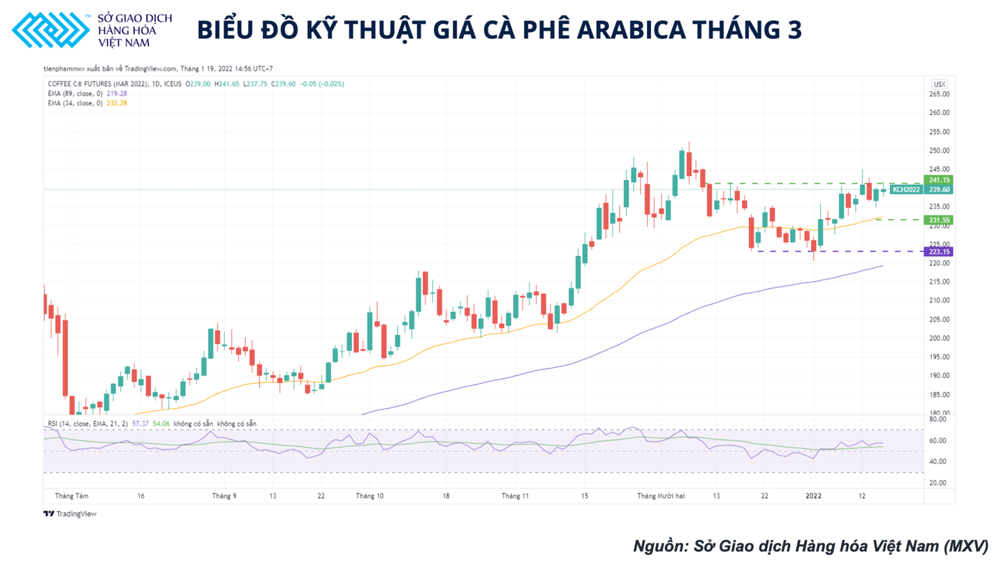 Giá Arabica đóng cửa ở mức 239.6 cents/pound, không có quá nhiều thay đổi trong phiên giao dịch đầu tiên mở cửa trở lại. Trong khi đó, giá Robusta giảm phiên thứ 4 liên tiếp về 2197 USD/tấn.