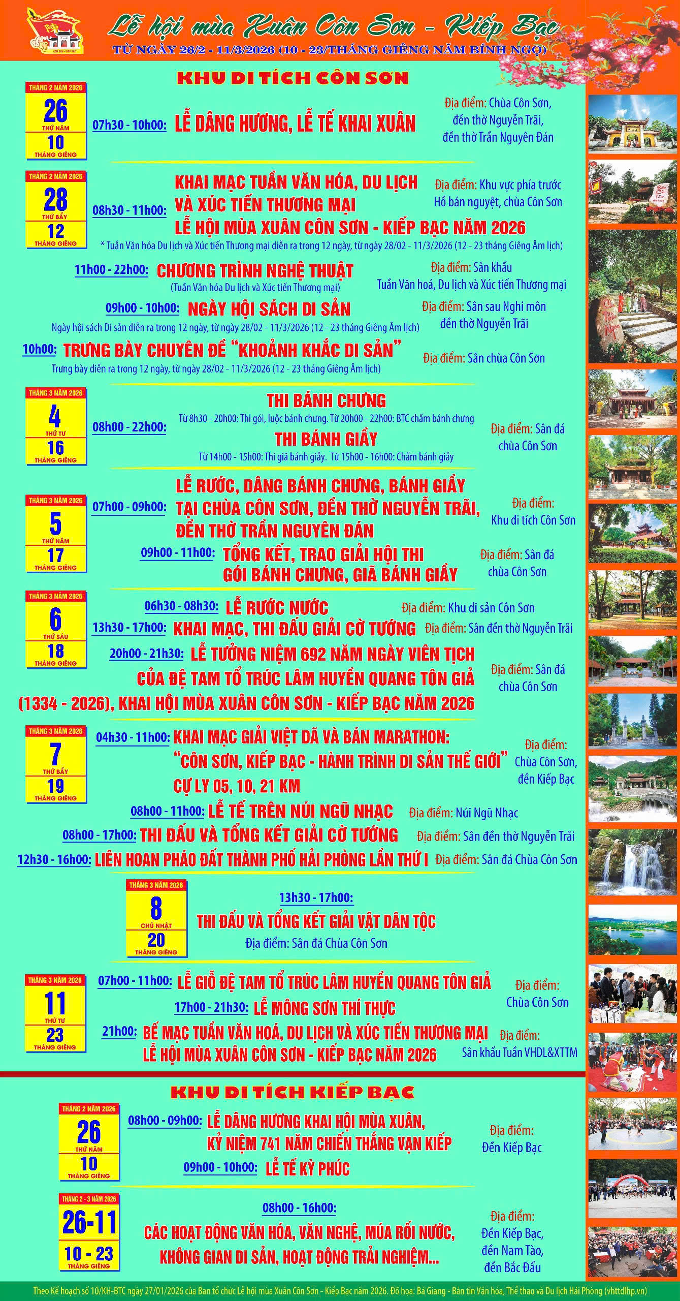Công tác chuẩn bị cho Lễ hội xuân 2026, Côn Sơn - Kiếp Bạc đã cơ bản hoàn tất, bảo đảm tiến độ, chất lượng và yêu cầu tổ chức trong bối cảnh quần thể Yên Tử - Vĩnh Nghiêm - Côn Sơn, Kiếp Bạc vừa được UNESCO ghi danh Di sản Văn hóa thế giới. Một mùa hội mới đang mở ra với diện mạo đồng bộ, trang trọng và trách nhiệm cao hơn bao giờ hết.