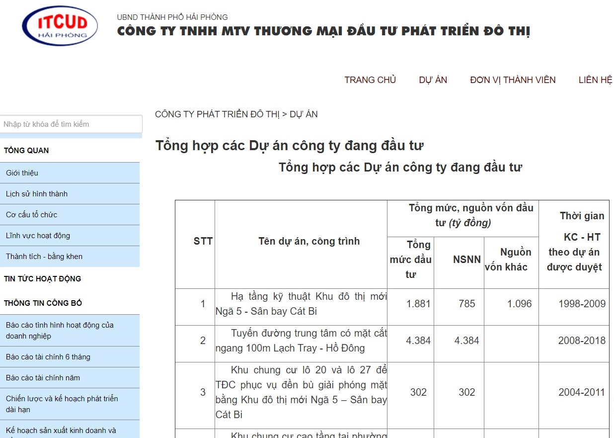Được biết, 3 dự án chậm tiến độ do công ty TNHH MTV Thương mại đầu tư phát triển đô thị (gọi tắt là Công ty) thực hiện gồm: Dự án đầu tư và phát triển hạ tầng kỹ thuật KĐT mới Ngã 5- sân bay Cát Bi; dự án tuyến đường trục chính có mặt cắt ngang rộng 100m Lạch Tray – Hồ Đông; Dự án đầu tư xây dựng KĐT mới Lạch Tray – Hồ Đông).