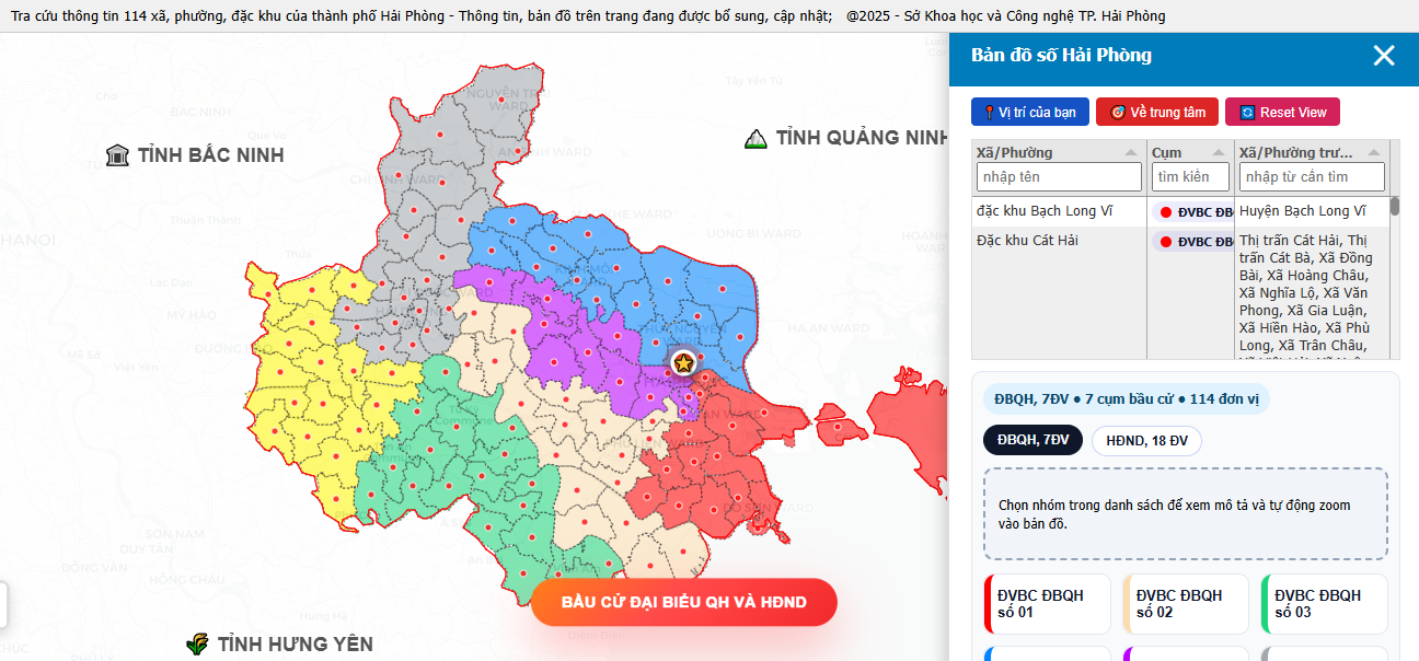 Sở Nội vụ phối hợp với Sở Khoa học và Công nghệ cập nhật, bổ sung một số tính năng tại website https://bandoso.haiphong.gov.vn/ và đăng tải thông tin về đơn vị bầu cử, danh sách người ứng cử lên https://bandoso.haiphong.gov.vn/daibieuqh/.