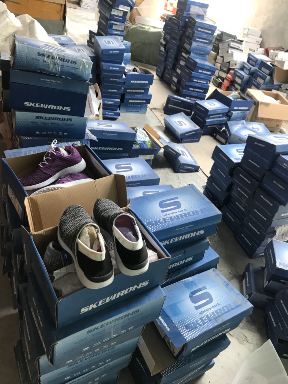 Tại thời điểm kiểm tra, nhà kho với diện tích rộng khoảng 800m2, chia làm 02 gian chứa hàng hóa, hàng hóa trong kho gồm giầy dép, túi xách, mỹ phẩm các loại, trên sản phẩm có chữ nước ngoài. Đoàn kiểm tra phối hợp với các lực lượng chức năng tổ chức phân loại, kiểm đếm hàng hóa. Kết quả phân loại, kiểm đếm sơ bộ hàng hóa gồm: túi xách, ba lô, ví cầm tay, thắt lưng da, giầy thể thao, giầy nữ thời trang các loại, giày nam giả da, ruột gối, giày dép trẻ em, mỹ phẩm các loại mang nhãn hiệu nổi tiếng như Louis Vuitton, Bvlgari, Gucci, Hermes,…. Toàn bộ số hàng hóa trên đều không có giấy tờ chứng minh nguồn gốc xuất xứ.