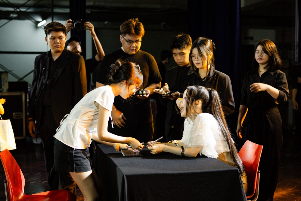 Khép lại buổi họp mặt ấm cúng và vui nhộn, nữ ca sĩ dành tặng những cái ôm, lời hỏi thăm cho từng fan. Không ít bạn trẻ bật khóc vì xúc động khi được đến gần cô gái họ yêu mến. Có người thổ lộ ấp ủ giấc mơ trở thành ca sĩ, ước mong một ngày đứng chung sân khấu với Han Sara.