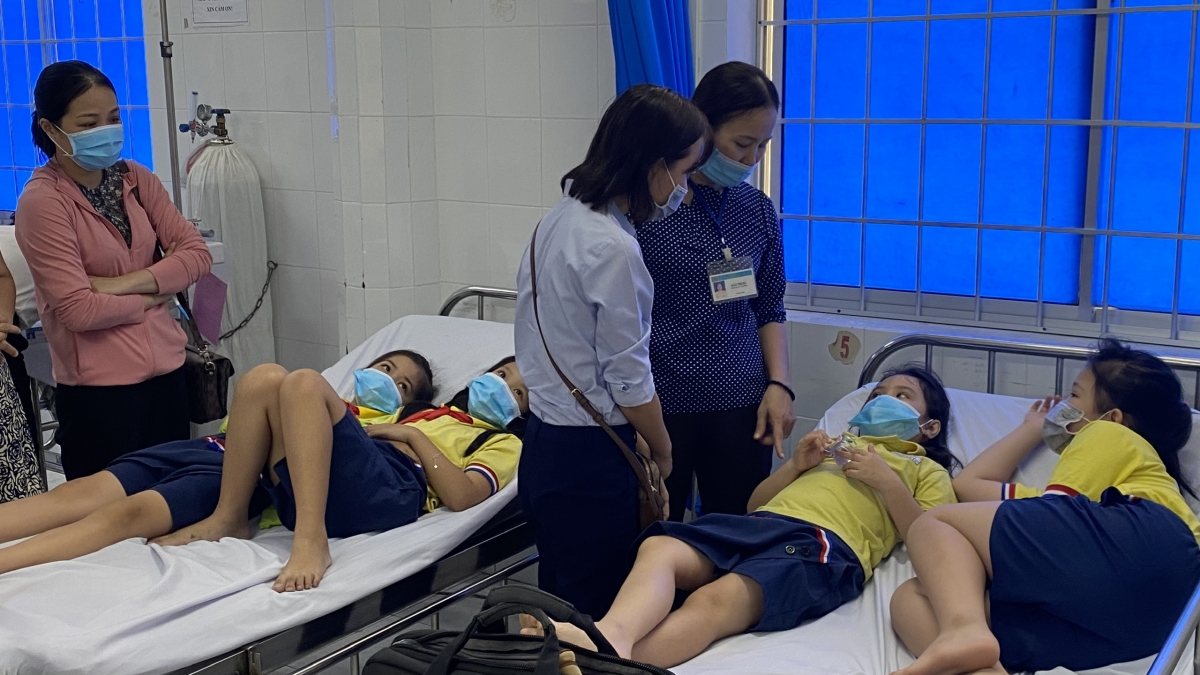 Các em học sinh được đưa vào Bệnh viện Lê Lợi (Ảnh: VOV.VN)