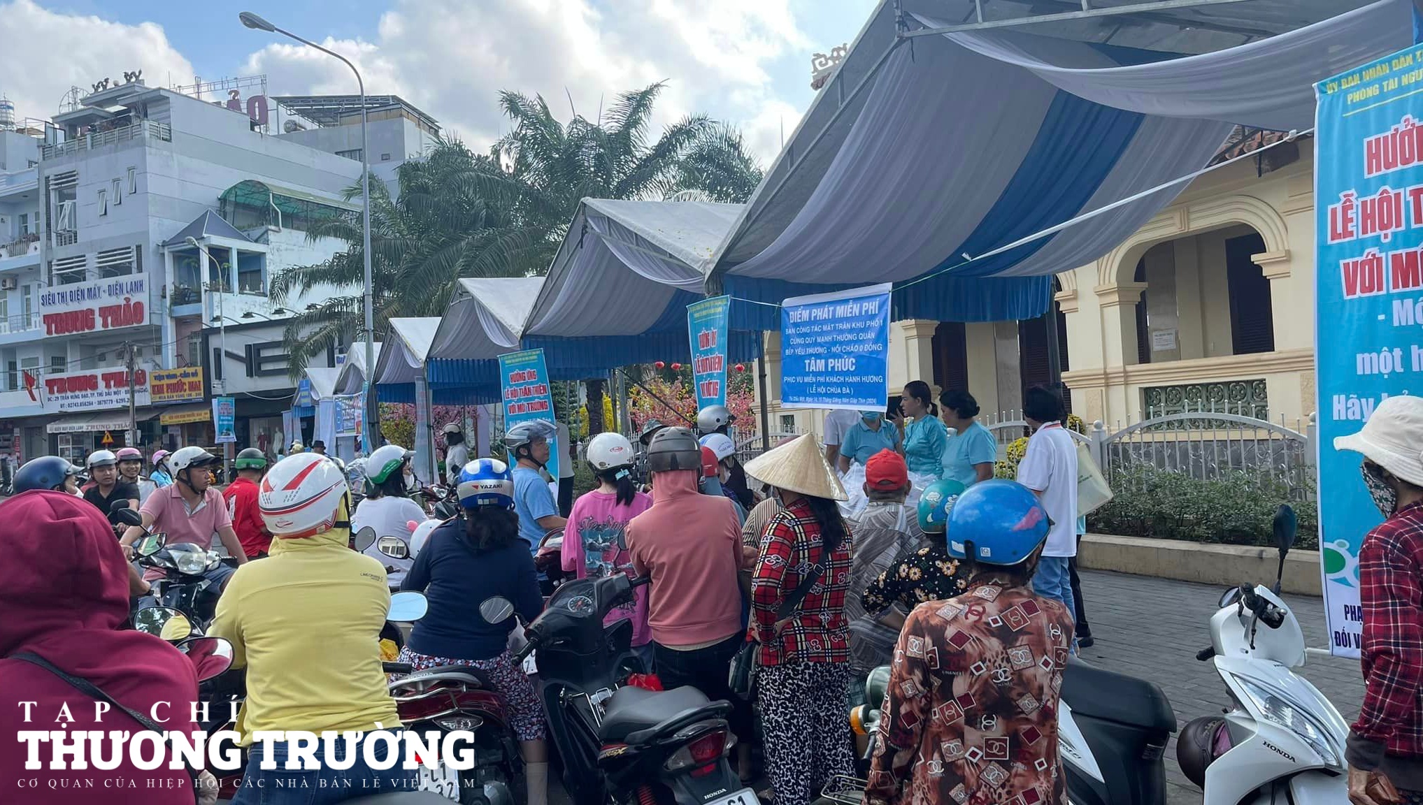 Nhiều quầy hàng miễn phí cho người dân khi tham gia lễ hội tại Bình Dương.