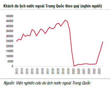 SSI Research cho rằng khách du lịch nội địa Trung Quốc sẽ tiếp tục xu hướng hiện tại khi có khách đến hơn và phục hồi hoàn toàn vào cuối năm 2024. Một số thay đổi trong du lịch nước ngoài của Trung Quốc trong giai đoạn hậu Covid bao gồm: Nhân khẩu học rộng hơn và thế hệ gen Z chiếm tỷ trọng cao hơn; thói quen du lịch chuyển sang du lịch trải nghiệm và ít chú trọng hơn đến mua sắm.