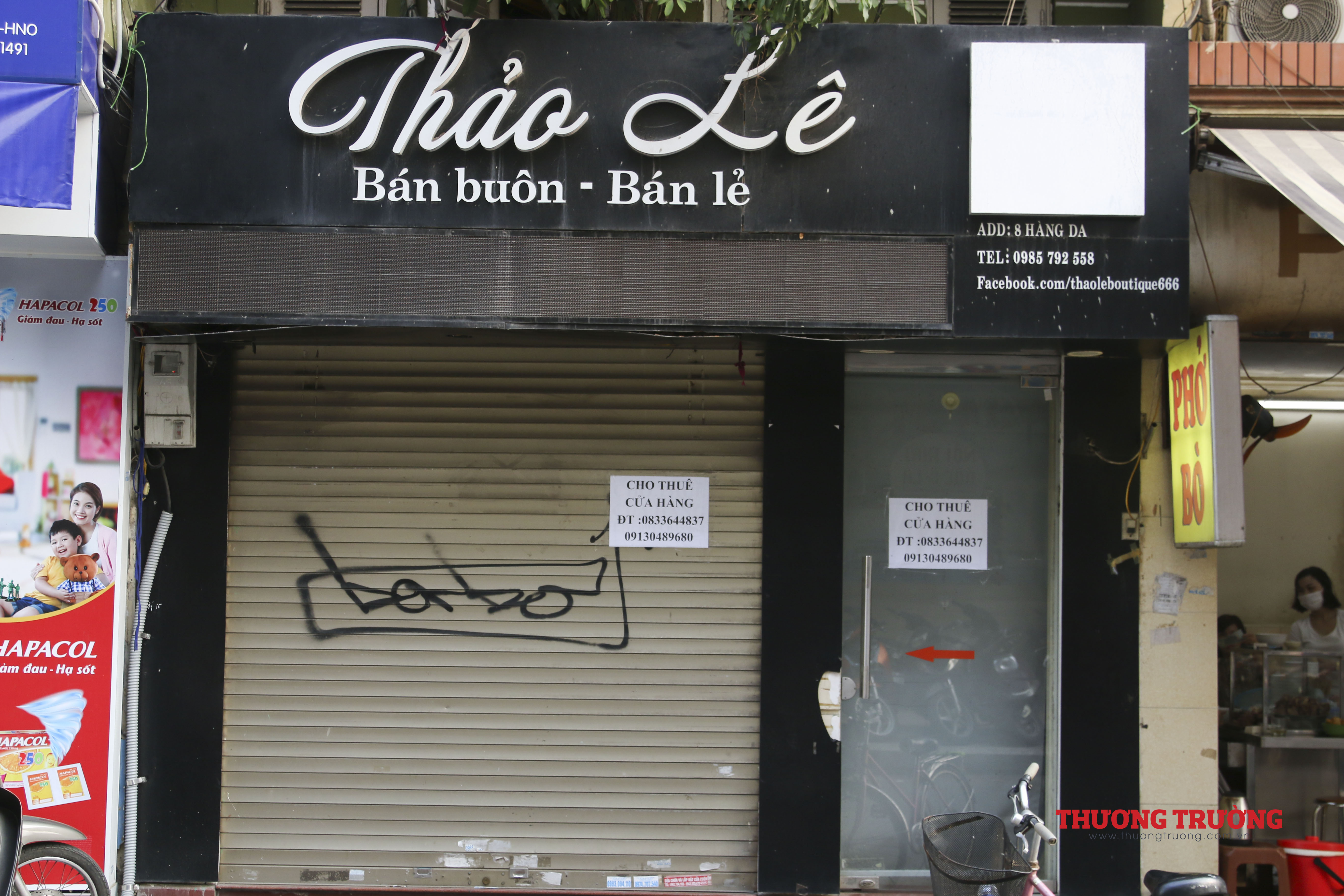 Theo ghi nhận của phóng viên Thương Trường, sau dịp Tết Nguyên đán, nhiều hàng quán trên những con phố cổ nổi tiếng, kinh doanh nhộn nhịp, sầm uất bậc nhất Hà Nội như Lương Văn Can, Hàng Gai, Hàng Trống, Hàng Bông... vẫn đóng cửa, treo biển cho thuê cửa hàng.