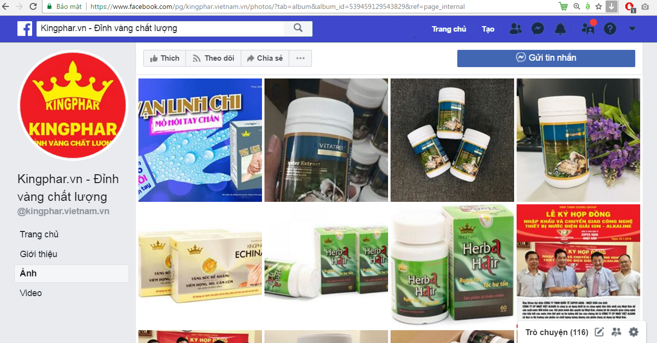| Trang Facebook bán hàng hiện tại của website http:// kingphar.vn Công ty Cổ phần Kingphar Việt Nam |