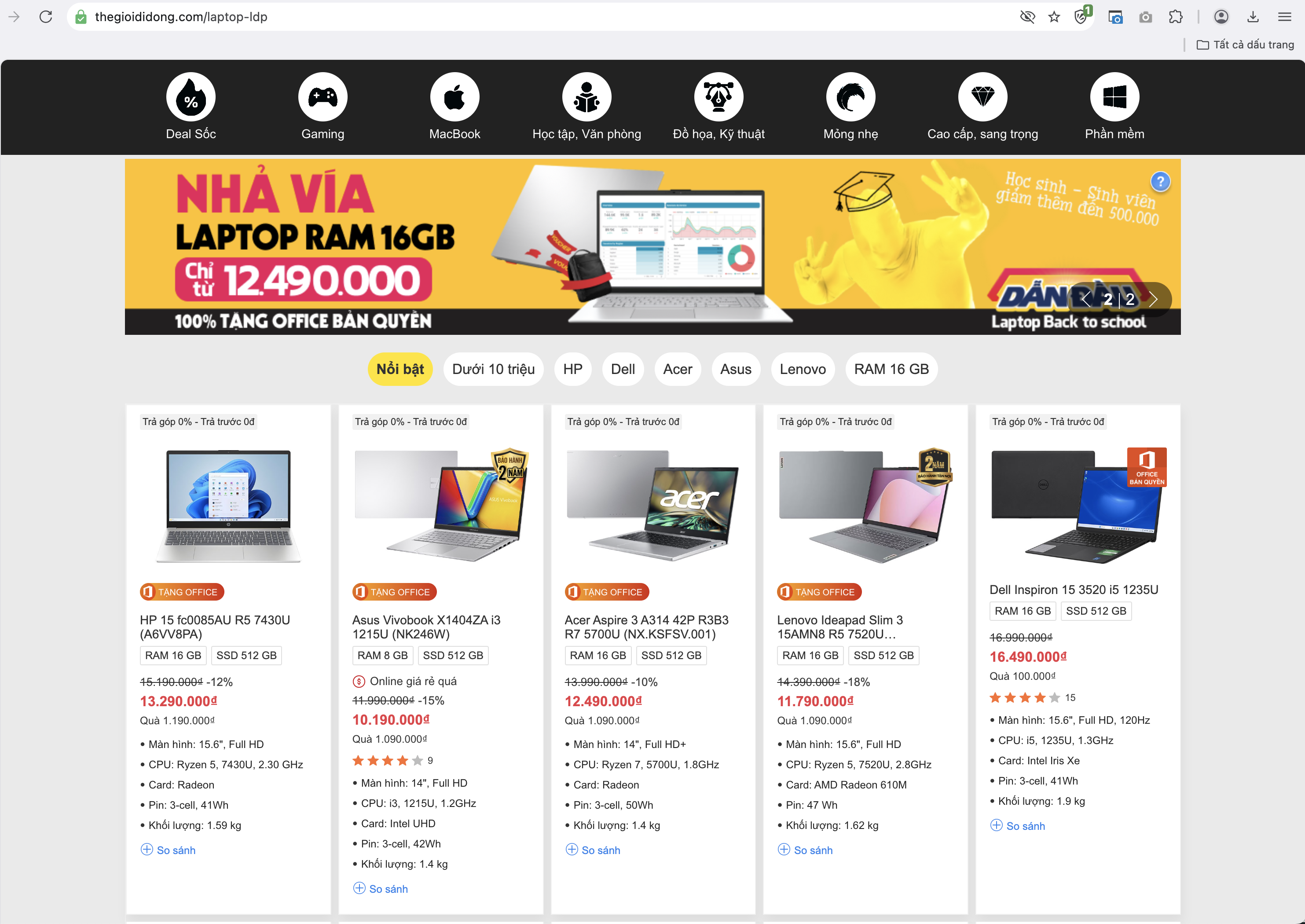 Theo ghi nhận, hiện các dòng máy tính xách tay đến từ các thương hiệu như: Lenovo, HP, Dell, Asus… với mức giá tầm trung từ 12 đến 18 triệu đồng cũng nhận được nhiều sự quan tâm của khách hàng. Thời điểm này, các cửa hàng, siêu thị điện máy như: FPT Shop, CellphoneS, Điện máy Xanh, Thế giới di động, Hồng Hà… đều “tung” nhiều chương trình giảm giá dao động 1 đến 4 triệu đồng tùy theo từng sản phẩm (phiên bản).