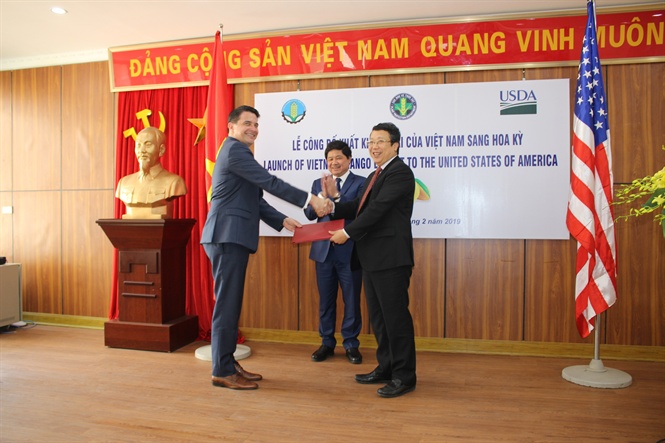 Tại buổi lễ công bố, ông Hoàng Trung, Cục trưởng Cục BVTV cho biết: Việt Nam chính thức gửi hồ sơ đăng ký xuất khẩu quả xoài tươi sang thị trường Hoa Kỳ từ năm 2009. Theo đó, cơ quan Kiểm dịch thực vật (KDTV) giữa Việt Nam và Hoa Kỳ đã trải qua nhiều cuộc họp và phiên làm việc nhằm thống nhất các điều kiện kỹ thuật về KDTV đối với quả xoài tươi của Việt Nam XK sang thị trường Hoa Kỳ. Đến nay, sau gần 10 năm, xoài của Việt Nam đã hoàn thành tất cả các thủ tục để được phép XK sang Mỹ thông qua Kế hoạch về xử lí bằng chiếu xạ được ký kết. Như vậy, đây là loại trái cây thứ 6 của Việt Nam (sau thanh long, chôm chôm, nhãn, vải thiều và vú sữa) được phép XK sang thị trường Hoa Kỳ.