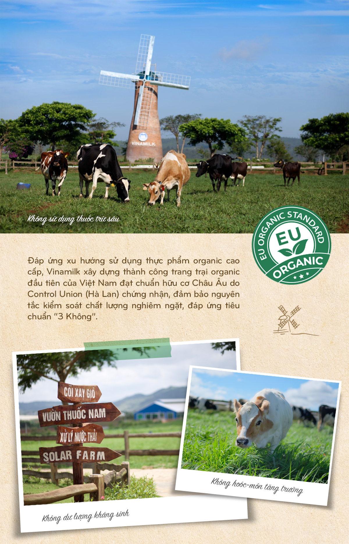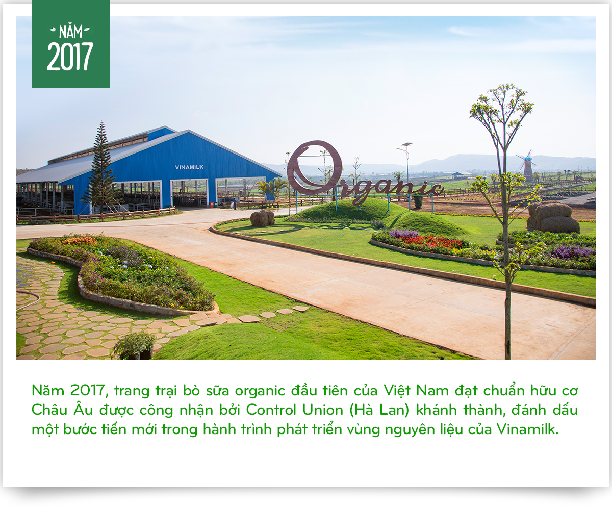 Sau Global G.A.P., hướng đi này tiếp tục được Vinamilk theo đuổi khi nghiên cứu, đầu tư, xây dựng trang trại bò sữa hữu cơ (Organic) theo chuẩn Châu Âu đầu tiên tại Việt Nam đặt tại Lâm Đồng.