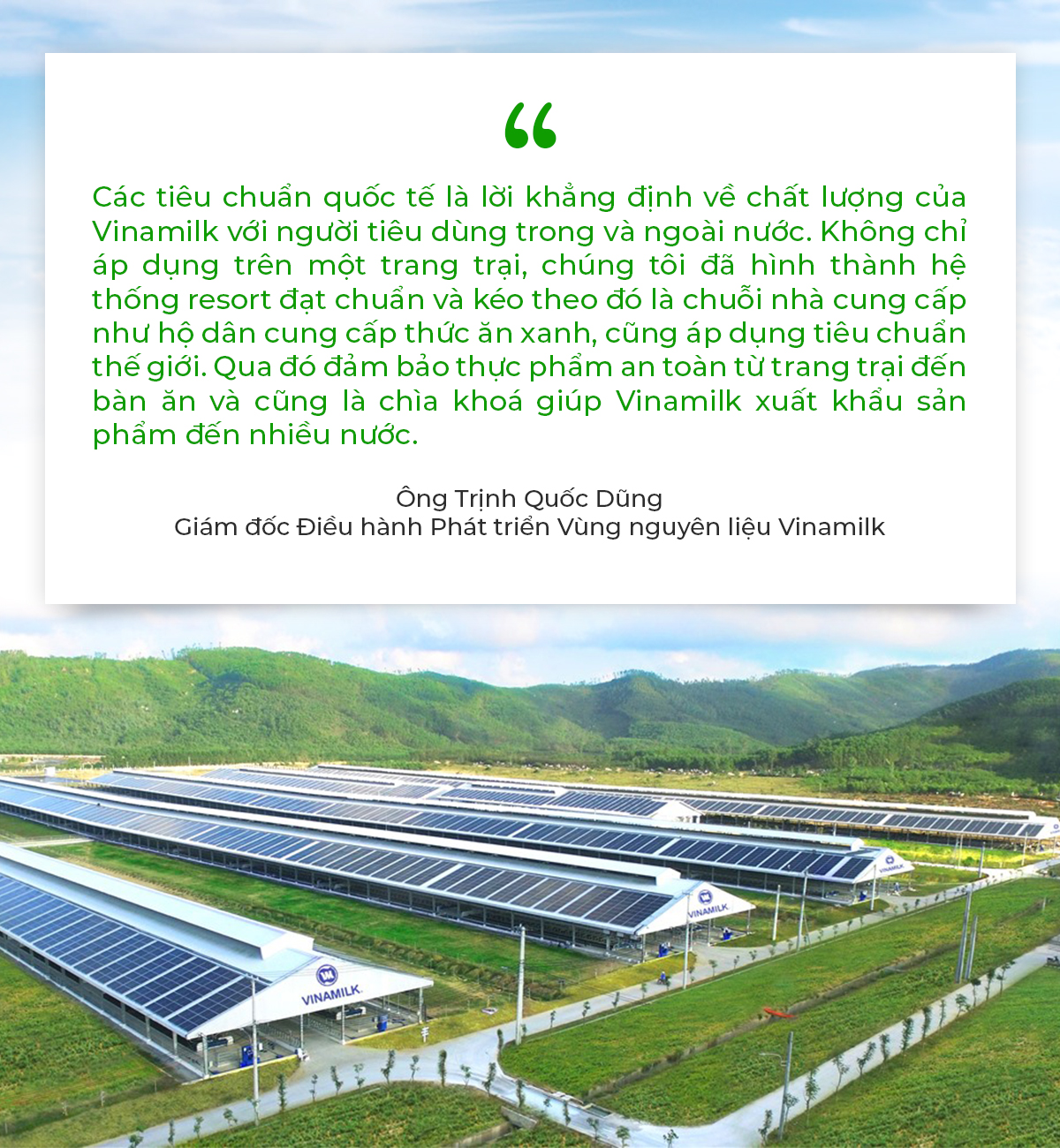 Không chỉ nỗ lực tạo dựng vùng nguyên liệu sữa trong nước, Vinamilk còn cho thấy tầm nhìn xa và chiến lược rõ ràng khi xác định phải xây dựng và vận hành các trang trại theo tiêu chuẩn quốc tế cao nhất, được thế giới công nhận.