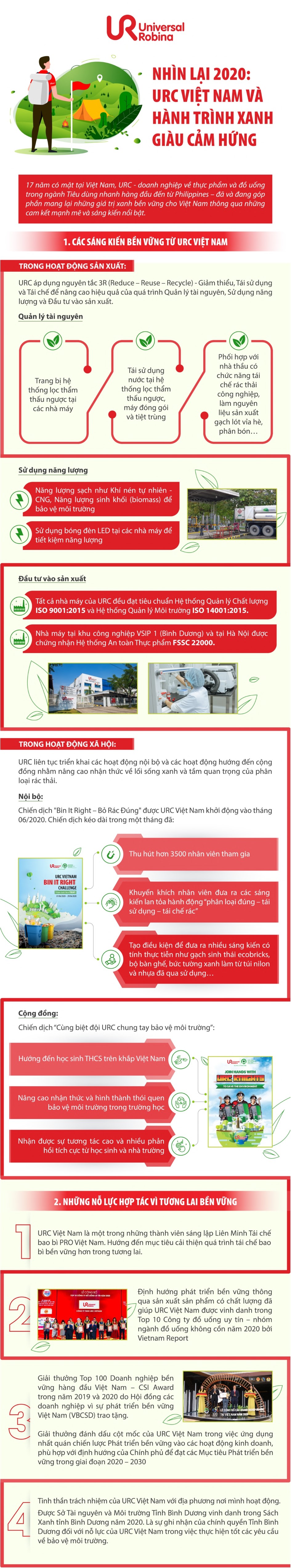 17 năm tại Việt Nam, URC - doanh nghiệp về thực phẩm và đồ uống trong ngành Tiêu dùng nhanh đến từ Philippines - đã mang lại những giá trị xanh bền vững cho Việt Nam qua cam kết mạnh mẽ và sáng kiến nổi bật.