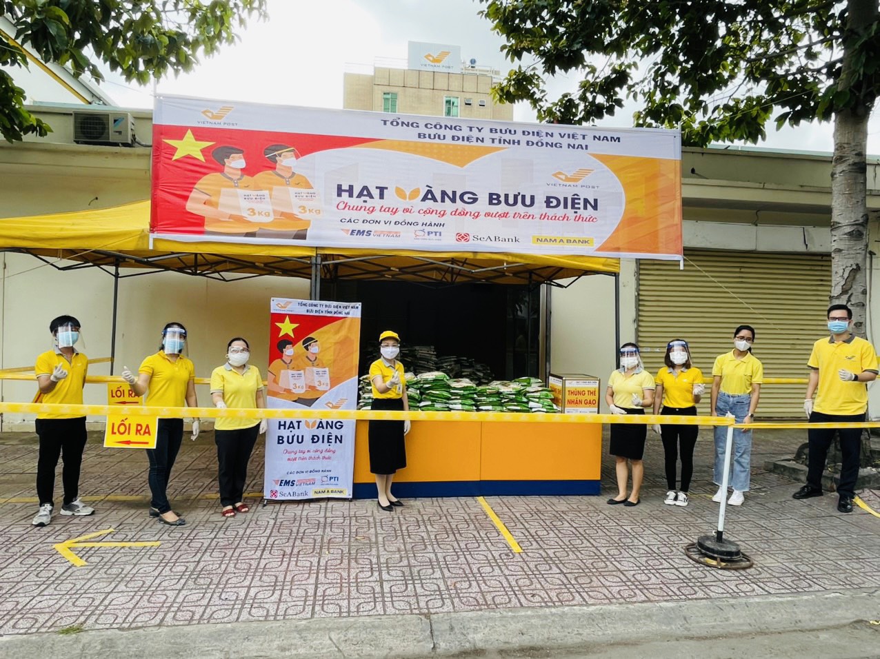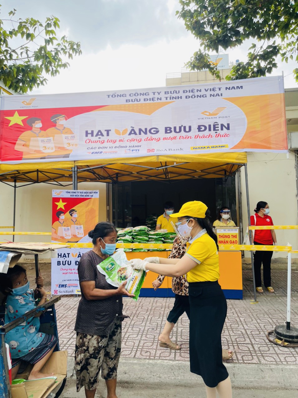 Với vai trò là doanh nghiệp Bưu chính quốc gia số 1 Việt Nam, thực hiện sứ mệnh vì cộng đồng, đồng thời đảm bảo an toàn mùa dịch, hỗ trợ kết nối chuỗi cung ứng dịch vụ thiết yếu, bình ổn thị trường, Bưu điện Việt Nam tổ chức phát gạo miễn phí cho các hộ gia đình có hoàn cảnh khó khăn, người già neo đơn, người tàn tật, sinh viên ngoại tỉnh, người lao động tự do, người lao động bị mất việc làm tại một số địa phương bị ảnh hưởng nặng của dịch Covid-19.