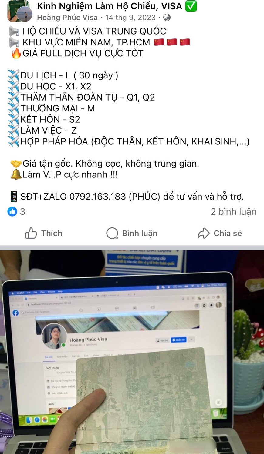 Để tìm hiểu thực hư dịch vụ này, phóng viên tham gia vào nhóm “Hộ chiếu, visa online toàn quốc”. Tại nhóm này các thành viên hoạt động rất tích cực, liên tục là những trạng thái quảng cáo dịch vụ làm hộ chiếu, visa của “cò”, với lời mời chào hấp dẫn như: “Khách hàng chỉ cần chụp ảnh chân dung, còn lại để chúng tôi lo”; “Đảm bảo nhanh, không phiền hà và giao tận nhà”; “Giá rẻ, nhanh chóng, an toàn”….