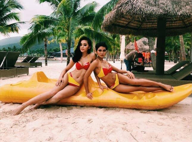 Hình ảnh H'Hen Niê và Thu Trang thời dự thi Hoa Hậu Hoàn Vũ Việt Nam 2017.