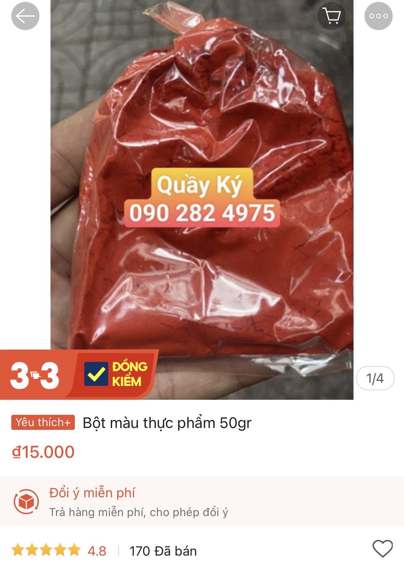 Trên sàn thương mại điện tử cũng bày bán rất nhiều bột màu thực phẩm nhưng chỉ được đóng đơn giản vào túi nilong như thế này.