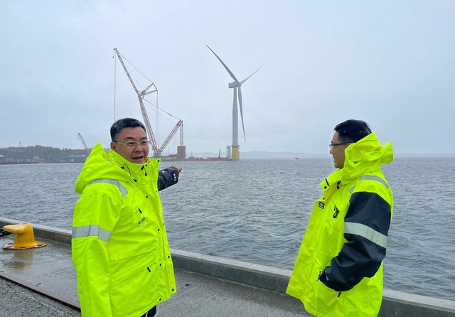 Để chuẩn bị cho dự án hợp tác đầu tư, xuất khẩu điện sang Singapore, PTSC đã tìm hiểu nhiều mô hình trang trại điện gió ngoài khơi tại các nước có ngành điện gió phát triển. (Ảnh: Chuyến khảo sát một mô hình điện gió ngoài khơi của PTSC tại Na Uy.)