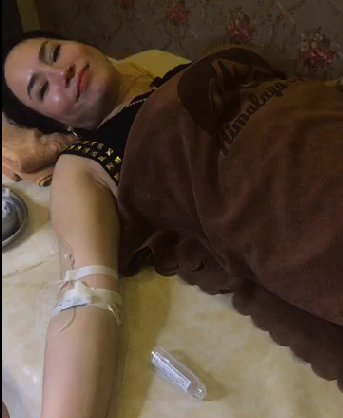 | Bà Vũ Kim Anh được nhân viên Himalaya truyền thải độc (ảnh cắt từ clip). |