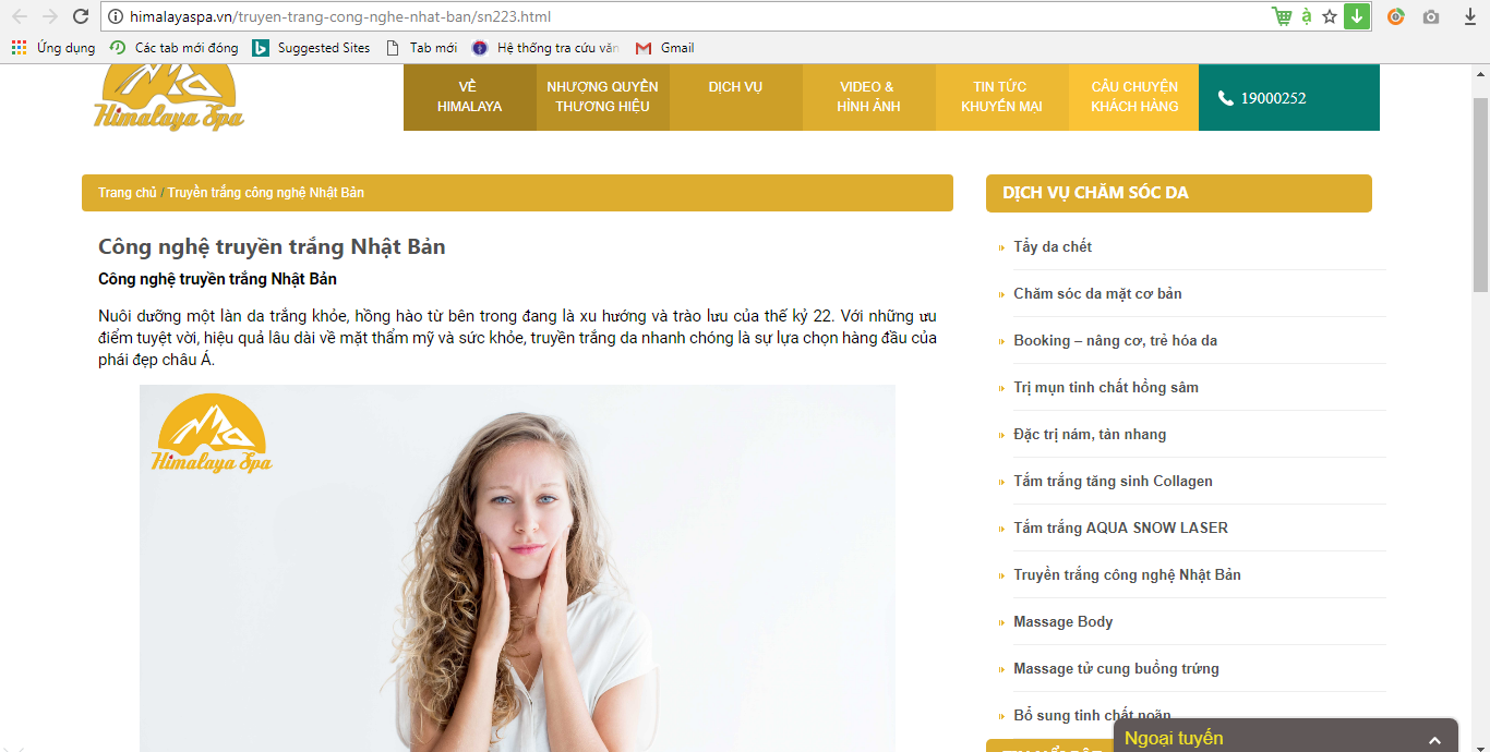 | Hệ thống Himalaya spa quảng cáo dịch vụ truyền trắng Nhật Bản không được cấp phép. |