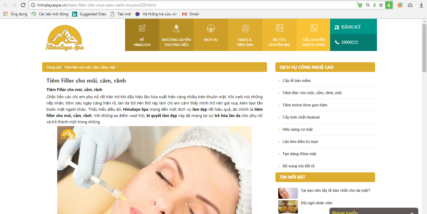 | Chỉ là spa chăm sóc da thông thường nhưng Himalaya lại vô tư quảng cáo thực hiện tiêm filler |