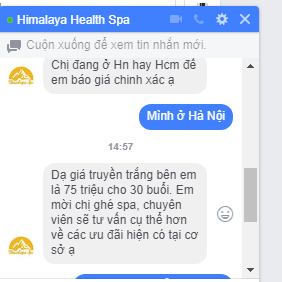 | Nhân viên Himalaya spa 22 Vũ Phạm Hàm báo giá dịch vụ truyền trắng Nhật Bản. |