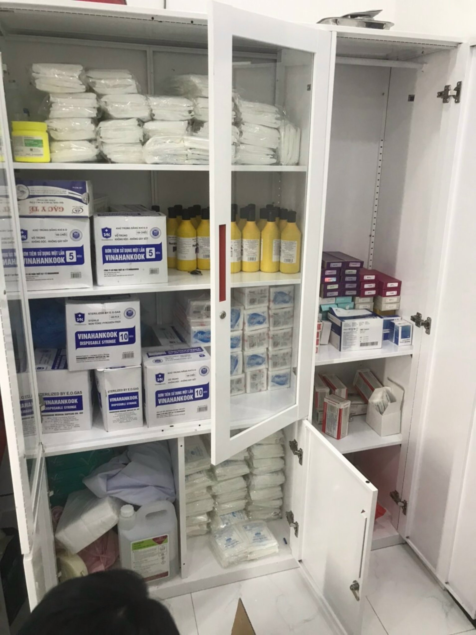 Thuốc và vật tư y tế bên trong phòng của cơ sở phẫu thuật thẩm mỹ không phép
