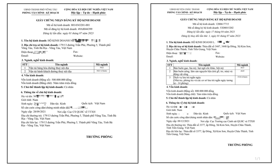 Ngay trong ngày đầu tiên khi Thông tư số 02/2023/TT-BKHĐT có hiệu lực thi hành, đã có 4 hộ kinh doanh được cấp thành công vào ngày 1/7 thông qua Hệ thống liên thông đăng ký kinh doanh và đăng ký thuế. Trong đó, có 3 hộ kinh doanh được cấp thành lập mới (1 hộ kinh doanh tại thành phố Vũng Tàu, 1 hộ kinh doanh tại thị xã Phan Rang, tỉnh Ninh Thuận và 1 hộ kinh doanh tại huyện Châu Thành, tỉnh Tiền Giang), có 1 hộ kinh doanh được cấp đăng ký thay đổi tại huyện Châu Thành, tỉnh Tiền Giang.