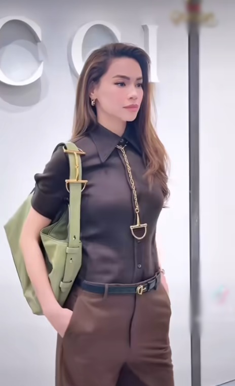 Xuất hiện ở event, "nữ hoàng giải trí" không cần lên đồ cầu kì. Người đẹp chỉ diện áo sơ mi nâu phối đồng điệu với quần ống loe hack dáng vẫn sang đỉnh. Bà xã Kim Lý phối cùng túi xách cùng thương hiệu. Mỹ nhân 8x lựa chọn kiểu tóc buông xõa cùng layout trang điểm tông hồng đất ăn rơ với gương mặt sắc sảo.