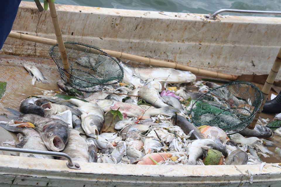 Cá chết với số lượng lớn, nhiều chổ nổi trắng cả mặt hồ |