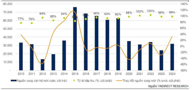 VNDirect tin rằng Luật Đất đai 2023 được thực hiện đúng tiến độ và sẽ có hiệu lực trong nửa cuối năm 2024, đánh dấu bước ngoặt lớn đối với lĩnh vực BĐS khi giải quyết được các nút thắt trong việc phê duyệt các dự án ở các dự án khu dân cư mới, giúp nguồn cung nhà ở dần phục hồi trong giai đoạn 2024-25.