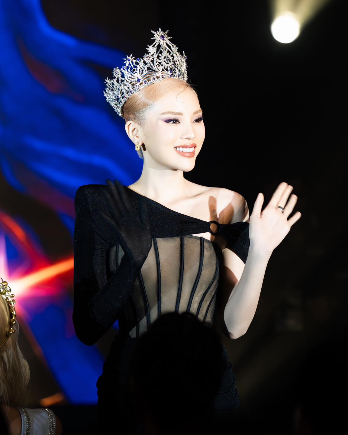 Tối 11/4, Hoa hậu Kỳ Duyên xuất hiện trong một sự kiện của cuộc thi Miss Universe Vietnam 2025. Người đẹp gây ấn tượng với vóc dáng quyến rũ, nụ cười rạng rỡ và mái tóc hồng nổi bật.
