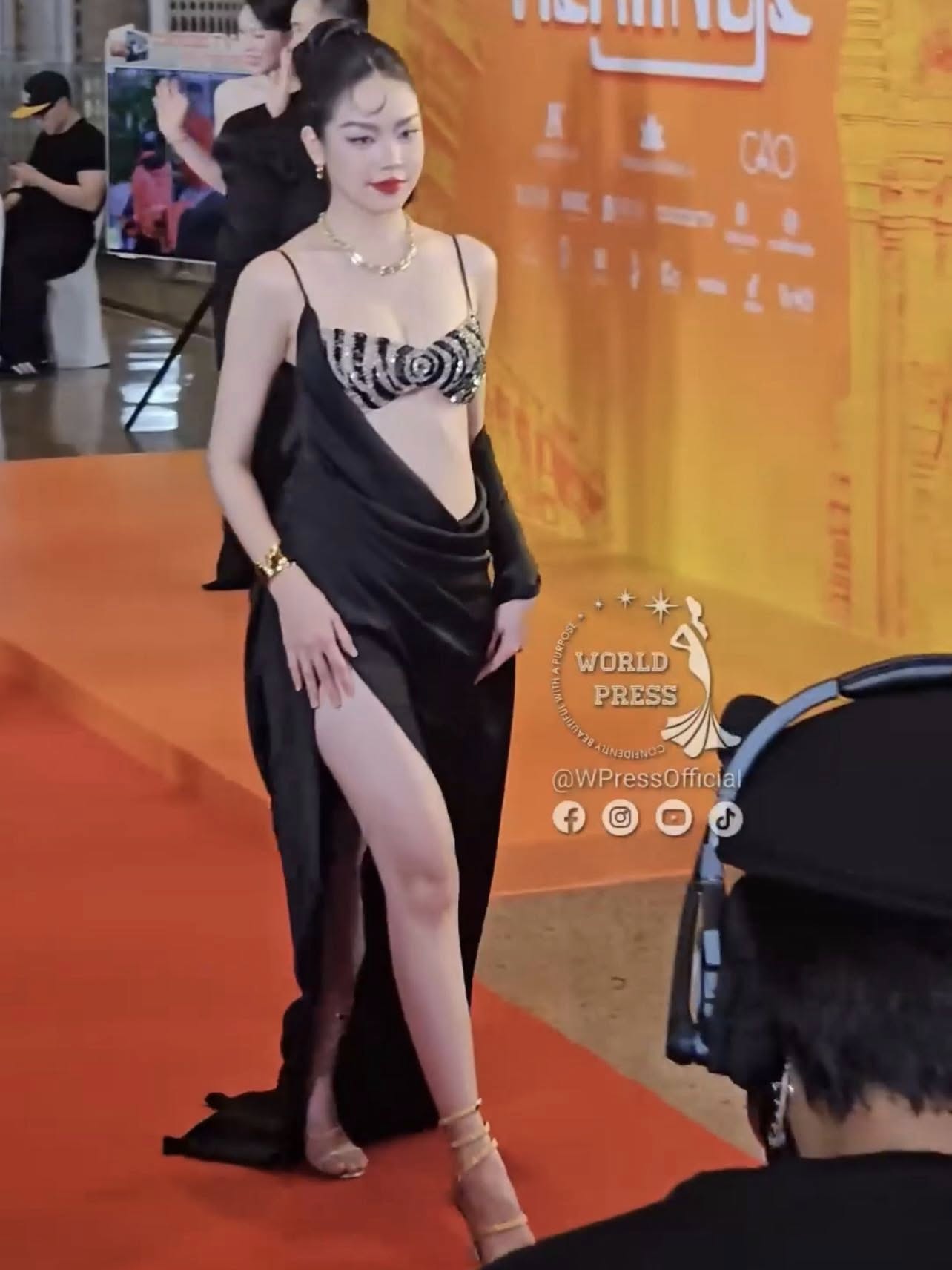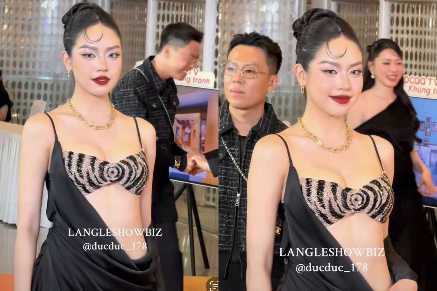 Xuất hiện trên thảm đỏ, Miss International 2024 diện trang phục táo bạo với điểm nhấn chính là chiếc bra lấp lánh khoe trọn vòng một đầy gợi cảm. Đây có lẽ là lần hiếm hoi nàng Hậu "chơi lớn" như vậy.