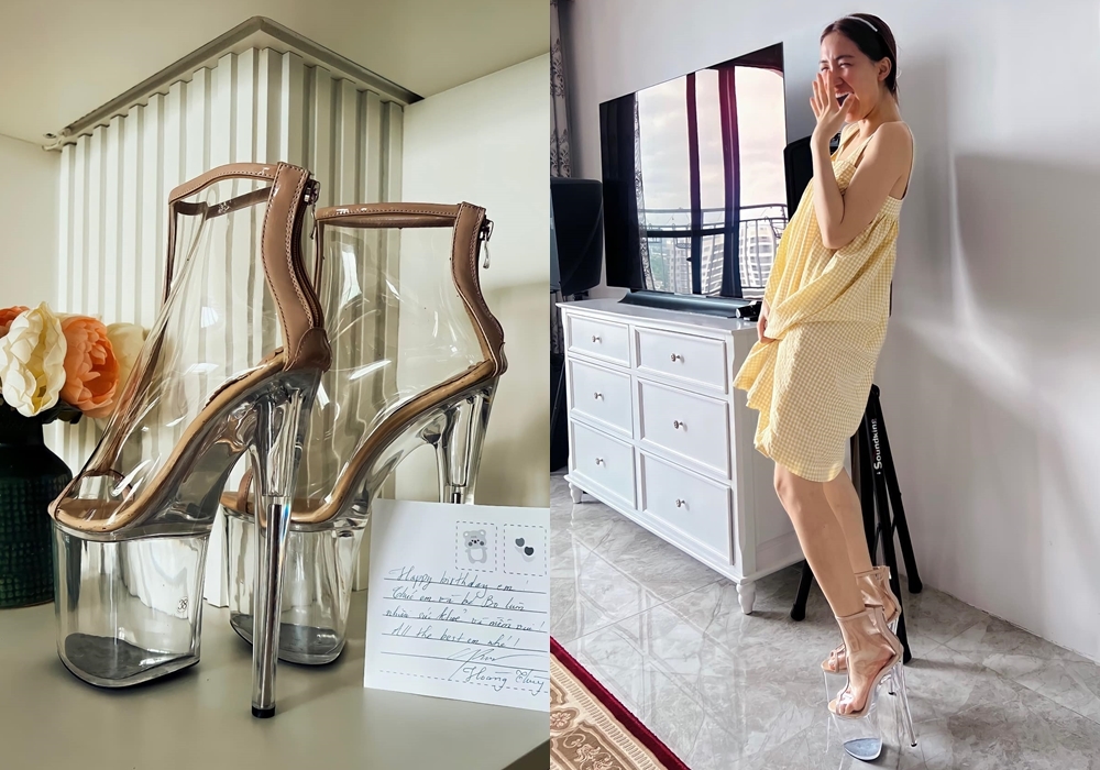 Hòa Minzy từng khoe đôi boots trong suốt, phần gót 30 cm được Hoàng Thùy tặng dịp sinh nhật năm 2022.