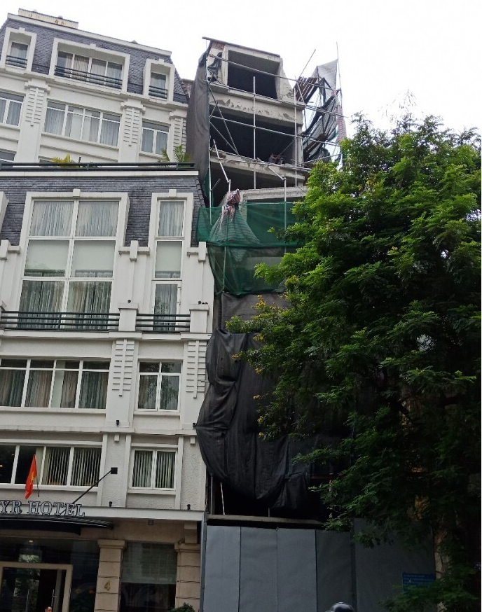 Số 2 Ngõ Tạm Thương ( P. Hàng Gai, Hoàn Kiếm, Hà Nội) hiện tại đang xây dựng 6 tầng và đổi lại kết cấu thành mái bằng