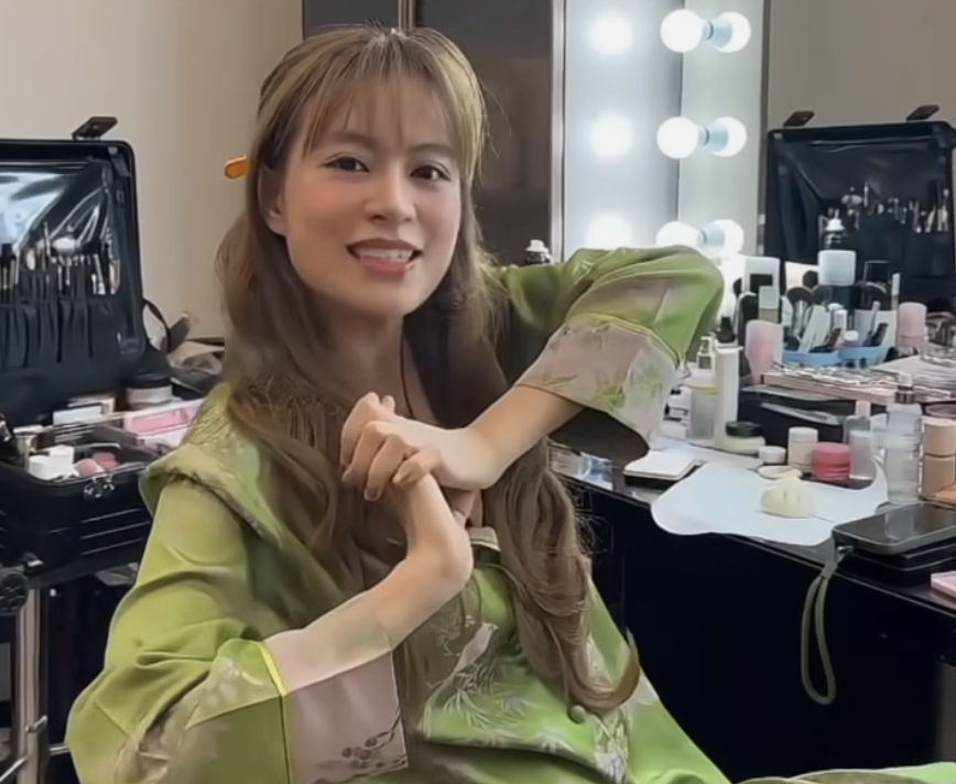 Hoàng Thùy Linh đăng lên Fanpage đoạn clip cô ngồi trang điểm. Lúc này, Hoàng Thùy Linh cũng diện đồ rộng, che kín vóc dáng.
