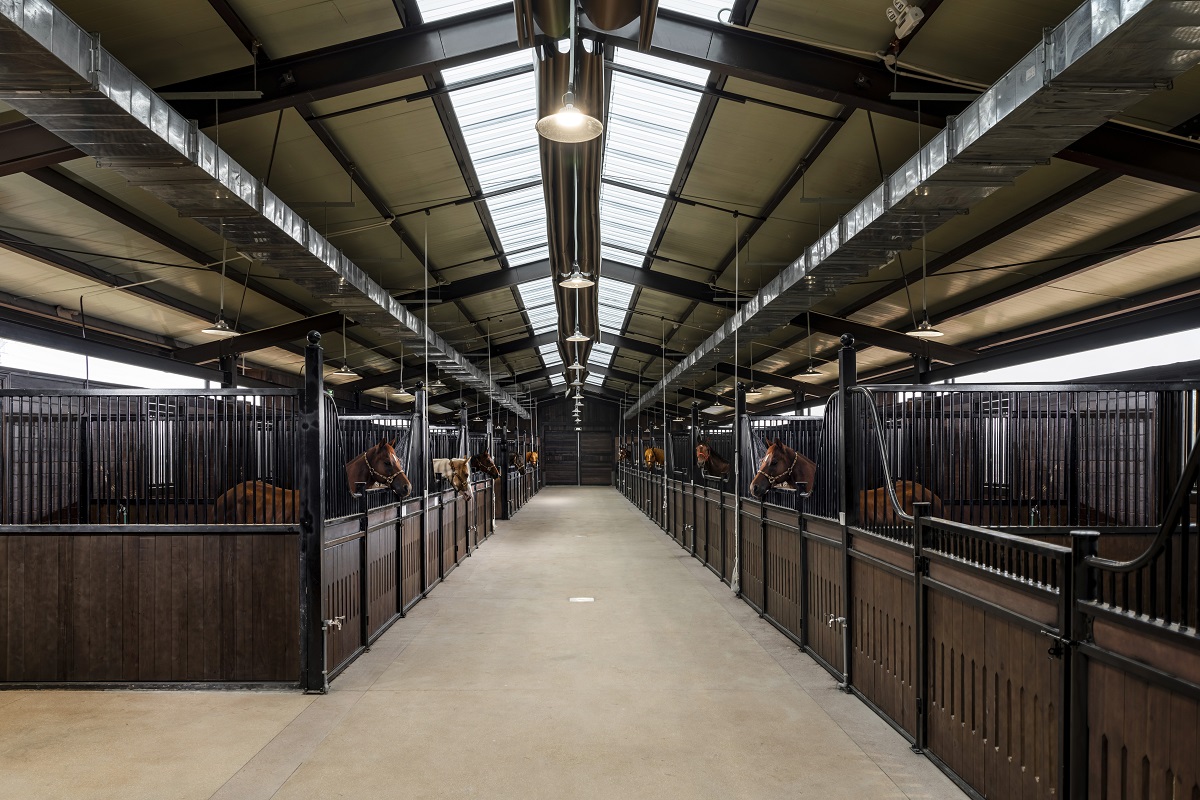 Hệ thống chuồng nuôi ngựa được thiết kế theo tiêu chuẩn nghiêm ngặt, trang thiết bị hiện đại tại Học viện cưỡi ngựa Hoàng Gia.