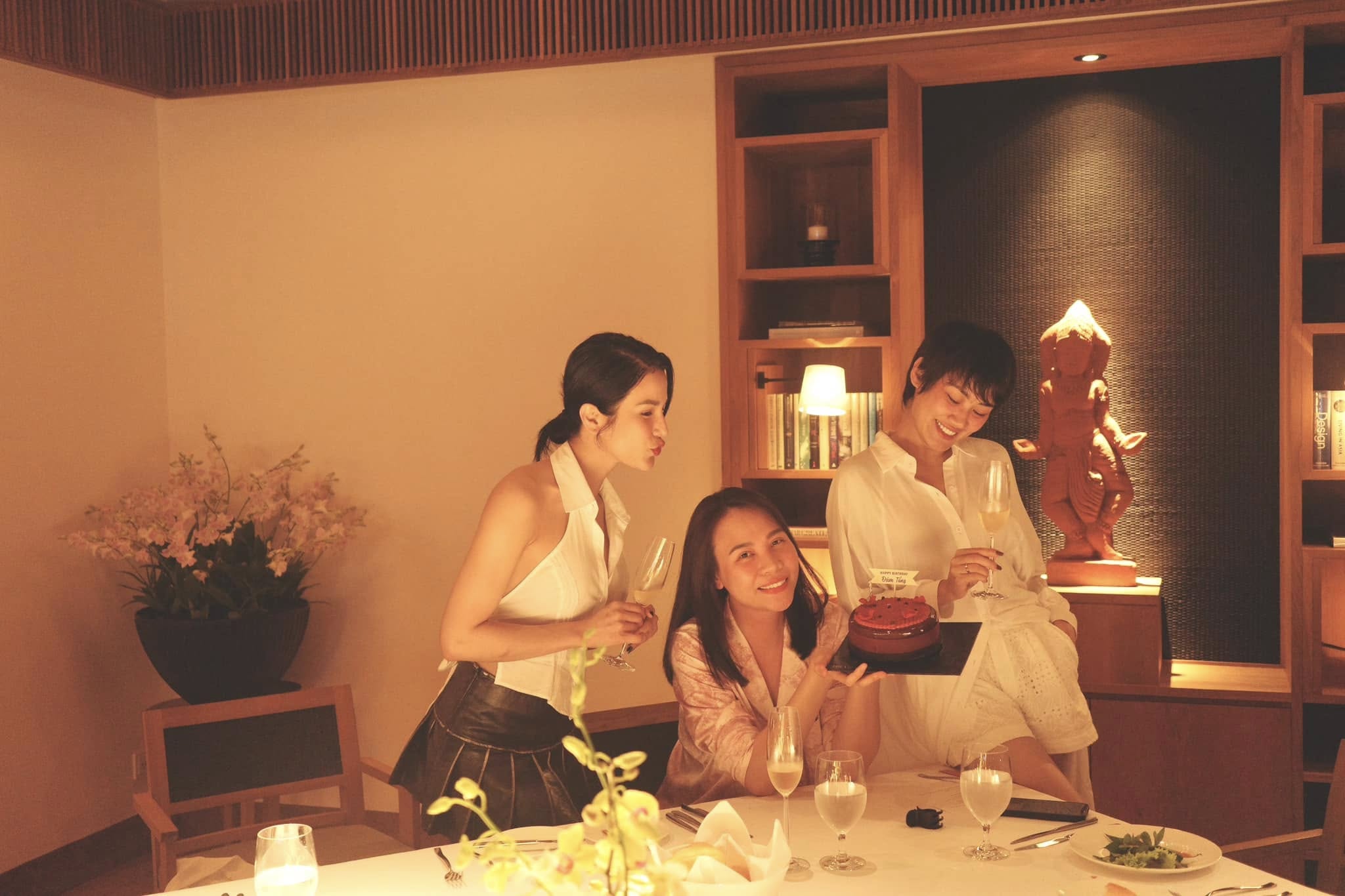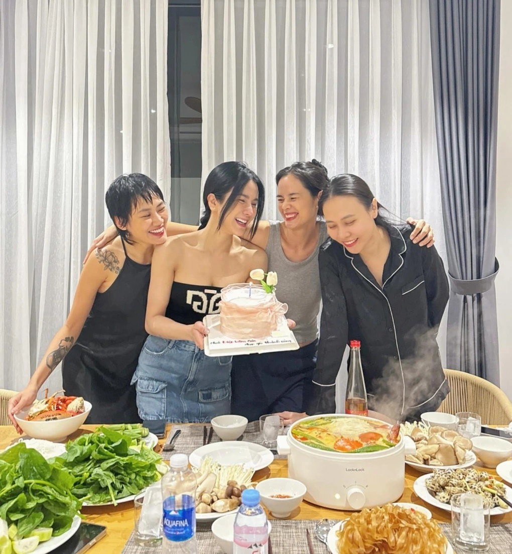 Hội chị em luôn đồng hành từ công việc đến cuộc sống của nhau. Diệp Lâm Anh từng bày tỏ sự xúc động khi được 3 người bạn thân chuẩn bị chiếc bánh kem có dòng chữ "Chúc Diệp Lâm Cún đạp gió thành công".