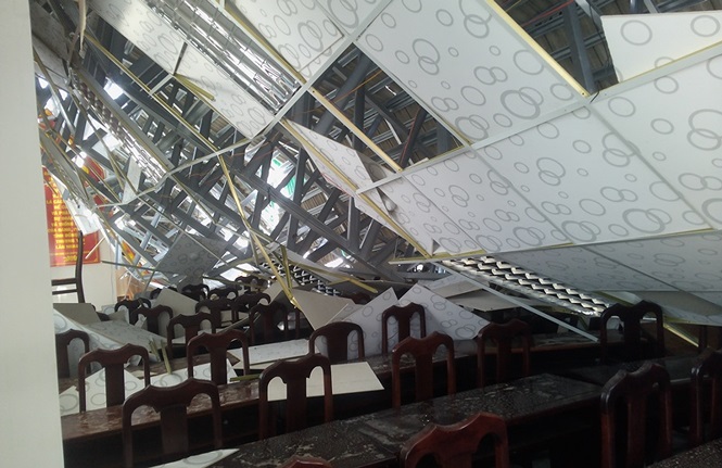 Toàn bộ phần mái, trần nhà của hội trường UBND thị trấn Ngã Sáu (huyện Châu Thành, tỉnh Hậu Giang) bị sập chưa rõ nguyên nhân. Công trình này chỉ mới khánh thành đưa vào sử dụng khoảng 8 tháng nay.