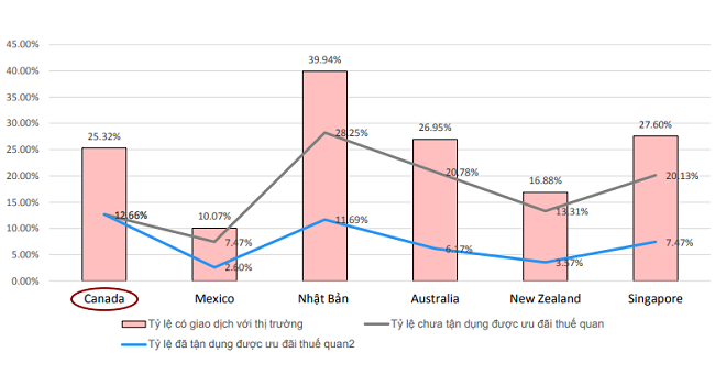 Tuy nhiên, sau 2 năm thực thi, theo khảo sát của Trung tâm WTO và hội nhập, doanh nghiệp Việt Nam chưa thực sự tận dụng được lợi ích từ hiệp định thương mại mang tính lịch sử này. Cụ thể, tỷ lệ doanh nghiệp tận dụng ưu đãi thuế quan trong CPTPP còn tương đối thấp, chỉ đạt khoảng từ 2 – 13% đối với các đối tác lớn tham gia vào hiệp định.