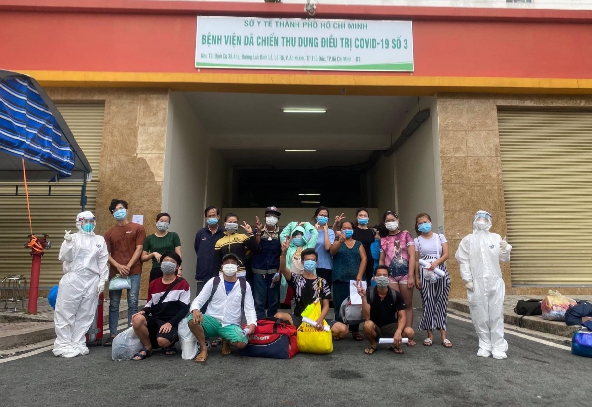Bệnh nhân tại Bệnh viện dã chiến số 3 TP HCM được xuất viện. Ảnh: Bộ Y tế.