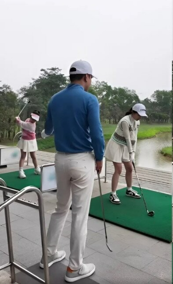 Nam diễn viên và 2 con gái đi tập chơi golf vô cùng vui vẻ, trong khi đó doanh nhân Anh Đào ngồi ngoài cổ vũ và tiếp thêm lương thư cho mọi người.