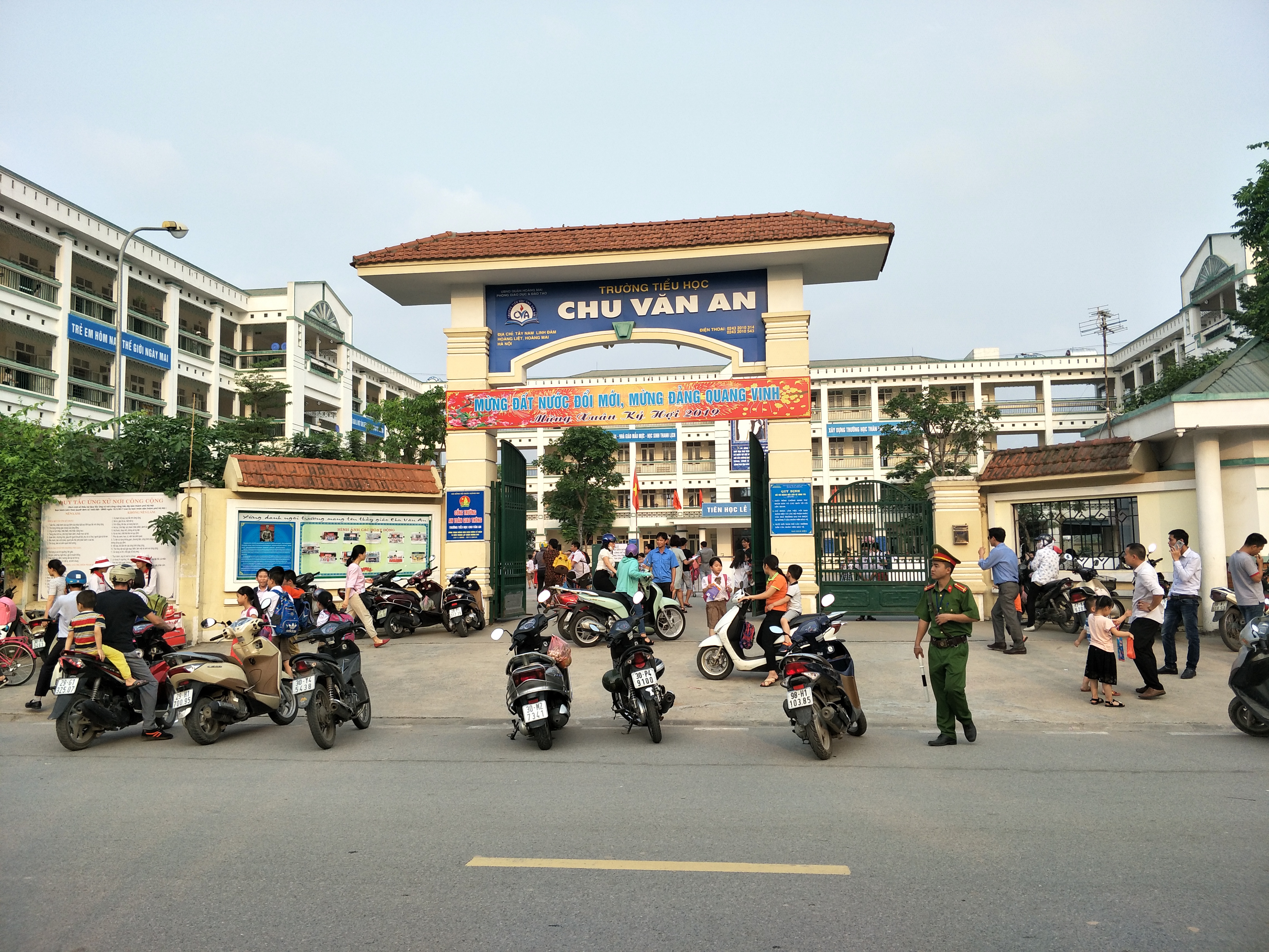 Từ thời điểm 16h30 ngày 8/4/2019, khu vực cổng trường Tiểu học Chu Văn An (Hoàng Mai, Hà Nội) bắt đầu trở nên đông đúc với sự có mặt của nhiều cha mẹ học sinh được mời dự họp. Theo quan sát, đã có sự hiện diện của lực lượng công an để đảm bảo trật tự tại khu vực này. Nhà trường bố trí 02 bảo vệ để kiểm soát khu vực cổng phụ và đường vào phòng họp. Chỉ các phụ huynh có thẻ khách do Nhà trường cấp phát thì mới được vào phòng họp. Nhiều phóng viên của các cơ quan báo chí đã có mặt từ sớm nhưng không có thẻ khách do Trường TH Chu Văn An cấp nên không thể tham dự cuộc họp.
