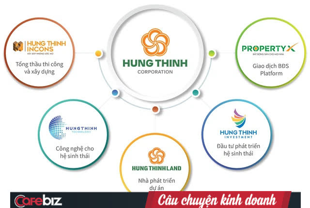 Dưới mô hình tập đoàn và cốt lõi là bất động sản, hệ sinh thái của Hưng Thịnh được tạo ra tương ứng vai trò của 5 công ty thành viên chủ lực là Hưng Thịnh Land, Hung Thinh Investment, Hung Thinh Incons, Hung Thinh Technology và PropertyX.