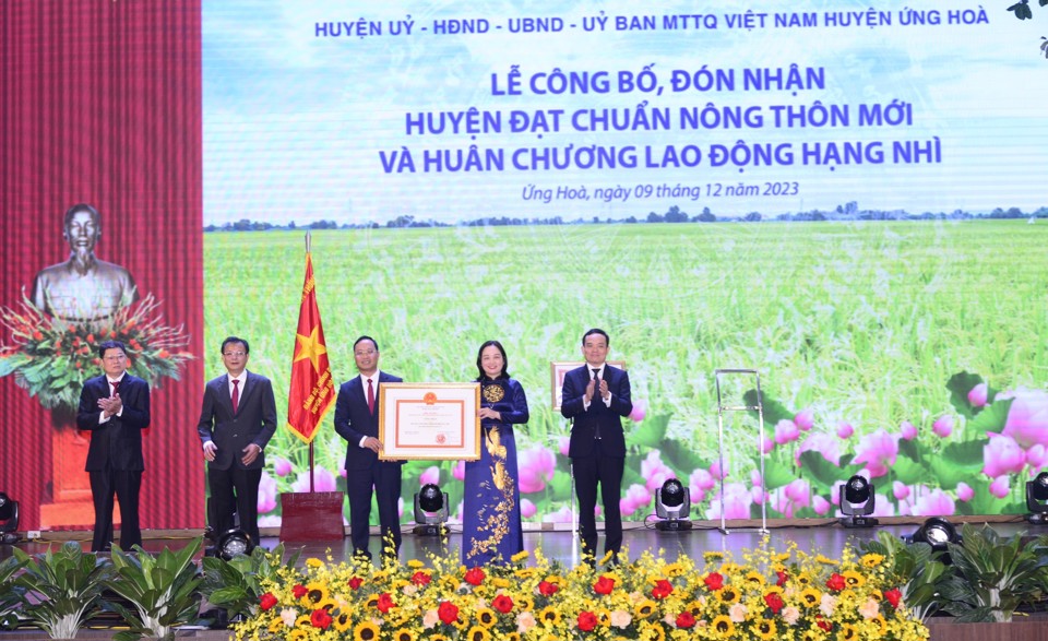 Ngày 9/12, Huyện ủy - HĐND - UBND - UBMTTQ Việt Nam huyện Ứng Hòa tổ chức Lễ công bố, đón nhận huyện đạt chuẩn Nông thôn mới (NTM) năm 2022 và đón nhận Huân chương Lao động hạng Nhì.